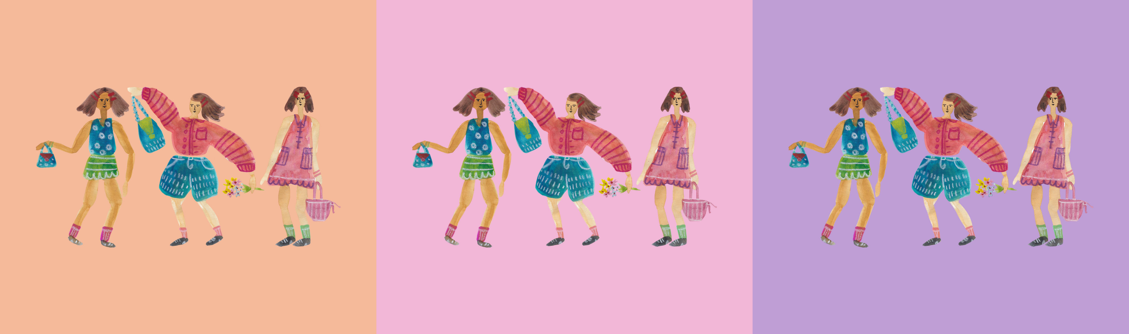 Hand painted using different mediums such as gouache, watercolor, and acrylic paint. Scanned into the computer with some light touch ups.